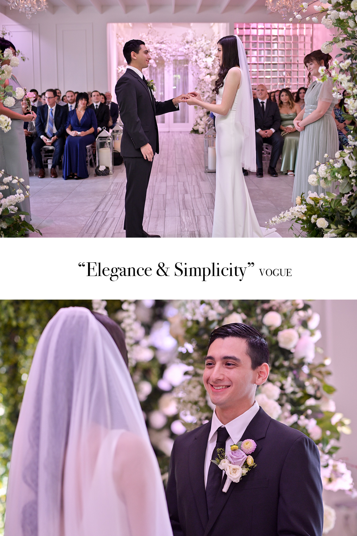 • “Elegance & Simplicity Reigned Supreme at this L.A. Wedding Chapel”. VOGUE.  Our venue is a jewel-box, with natural light, high ceilings, crystal chandeliers, metallics, pillar candles & flawless florals.