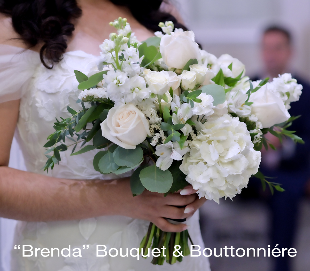 • Fresh “Brenda” bouquet with bouttoniére (default).