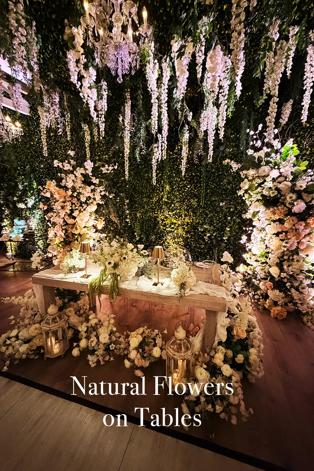 All Natural Flowers on the tables included (20-30 vases!). This package has stunningly beautiful natural garden blooms on the tables. Save thousands and impress all with this “Eco-Chic” set up (flowers stay with the chapel) Book this package now to unlock this once in a life time upgrade.
